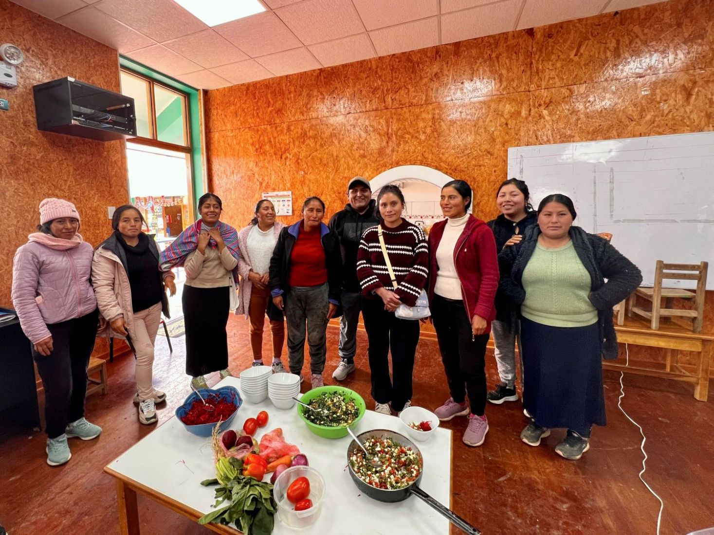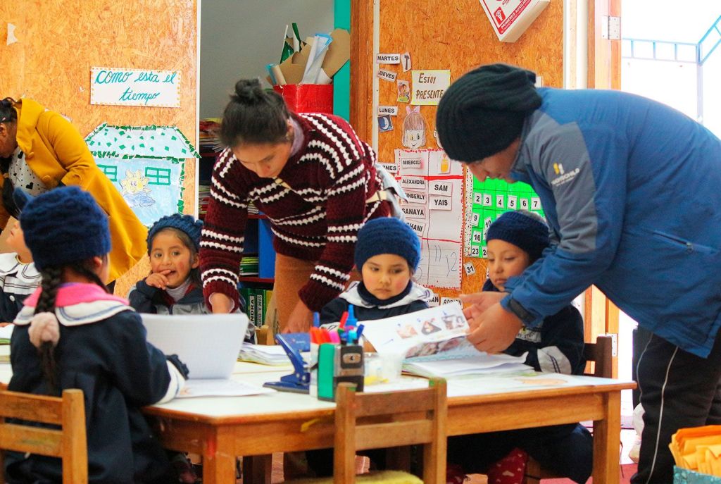 «Por ejemplo, en el Día de la papa, del producto nativo de la papa, hacemos comidas saludables usando ese recurso. Igual, en el mes de junio hablamos del chuño. Cada familia prepara un plato típico y expone qué ingrediente se ha utilizado, si es un plato nutritivo o no… ¿Qué más le podría acompañar al chuño? ¿Qué otros productos más para que sea una receta nutritiva? Y de esa manera pues vamos enriqueciendo sus conocimientos»